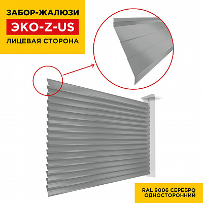 Ламель металлическая Z-образная усиленная ЭКО-Z-US, цвет RAL 9006 Серебро, длина любая кратно 1см под заказ - для забора-жалюзи, беседки, перголы в Уральске